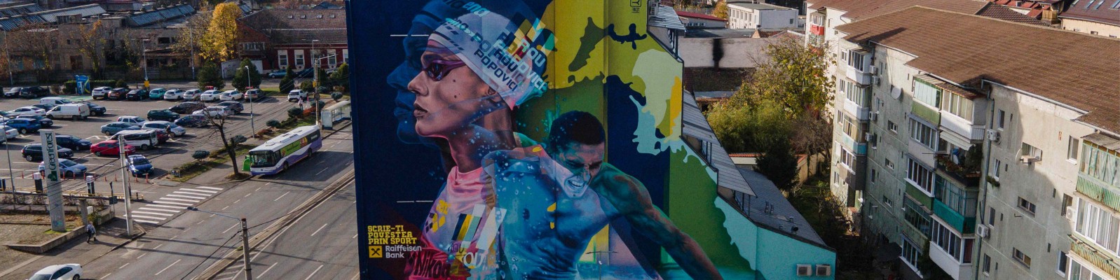 Un proiect de artă urbană care celebrează performanța și inspiră comunitatea prin povestea campionului David Popovici.