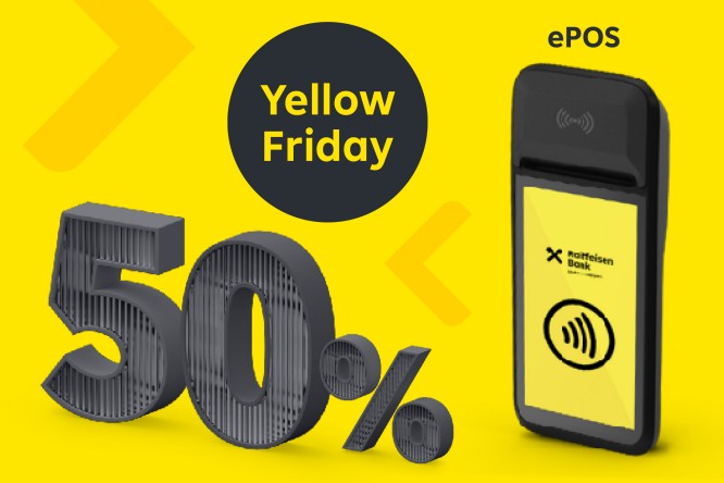 Doar de Yellow Friday 💛 ai 50% reducere la comisioanele de tranzacționare și 6 luni ZERO lei comision lunar de administrare pentru soluțiile de acceptare carduri: