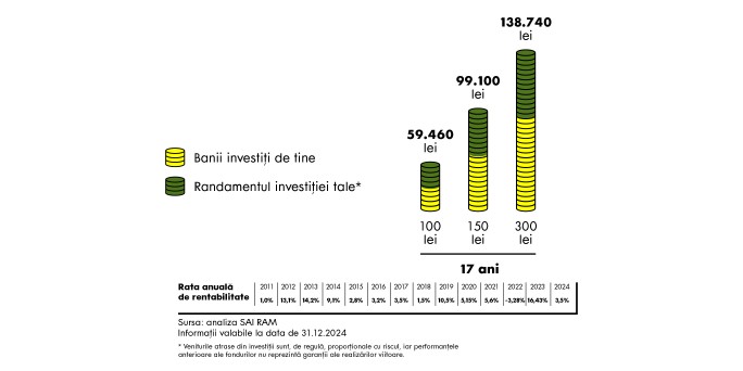 *Veniturile atrase din investiții sunt, de regulă, proporționale cu riscul, iar performanțele anterioare ale fondurilor nu reprezintă garanții ale realizărilor viitoare.